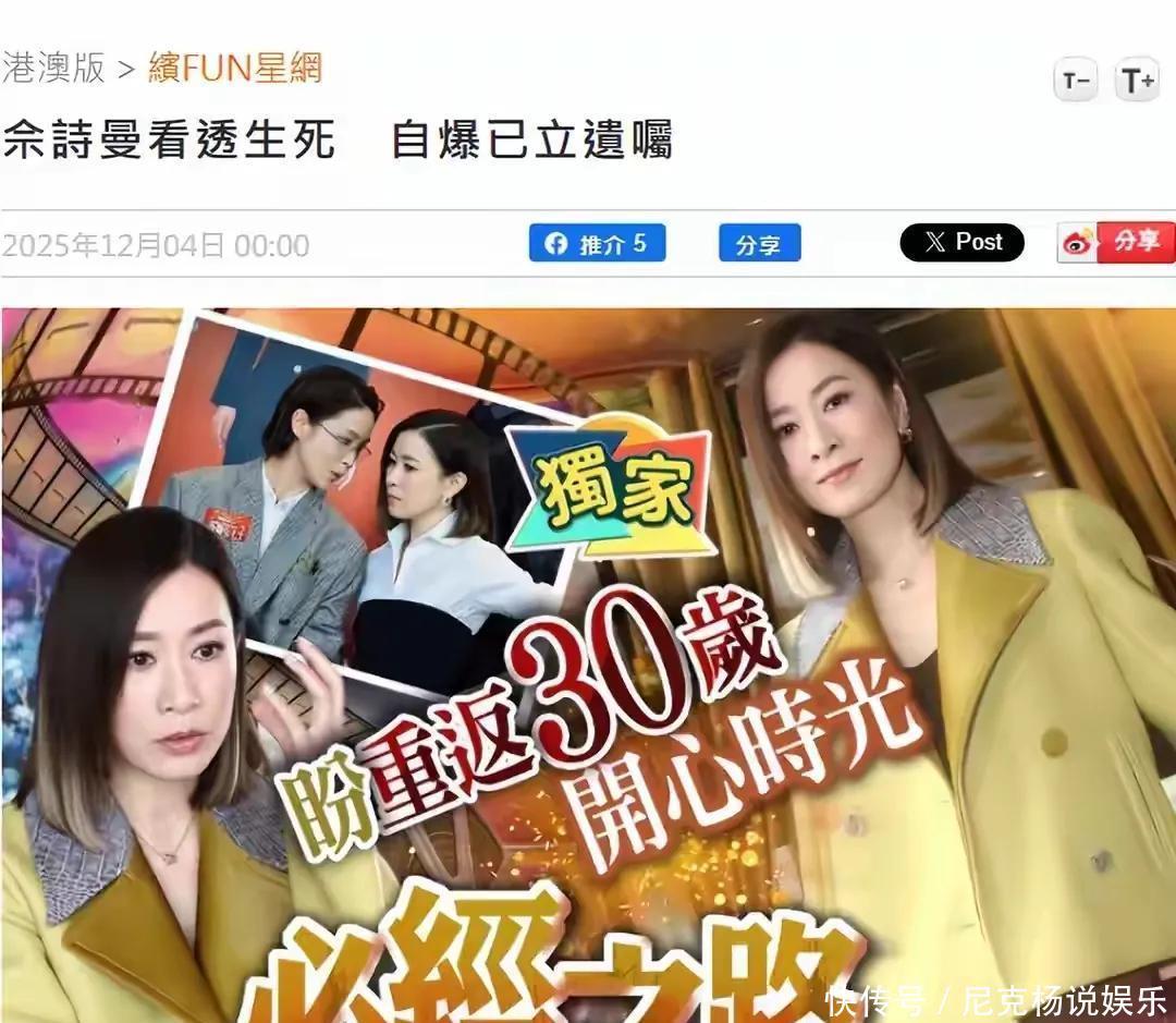 随着社会观念的日益开放,很多香港艺人都在生前健康无虞的情况下,便早早立下遗嘱,在他们眼中,这已不是禁忌,而是一项理性安排。毕竟,艺人的资产不仅雄厚而且多元,提早交代清楚,可以避免亲人因为争产失和。12月4日,港媒曝出佘诗曼便已经立下遗嘱,并自称看透生死,尤其是干爹许绍雄离世后,更觉世事无常,凡事都要早做打算。